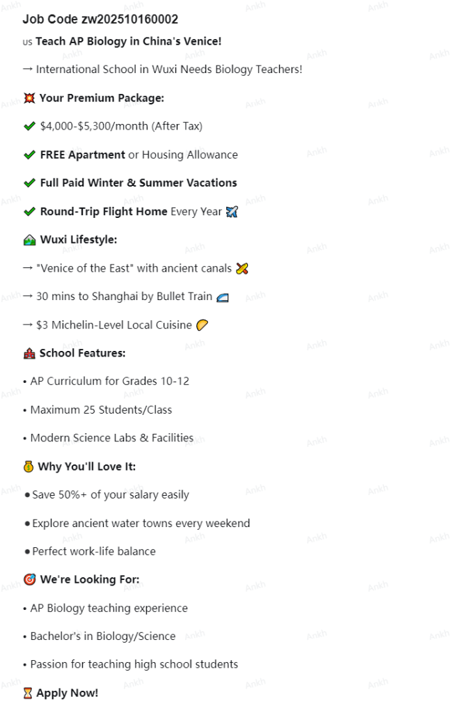 Teach AP Biology in Wuxi, China!